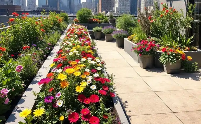 屋上に花壇を設置することで、ヒートアイランド現象の緩和を目指します。