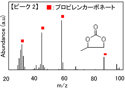 この他の成分としてジエチルカーボネート(DEC)、硫黄化合物が検出されていましたが、後者については添加剤由来の可能性が考えられます。