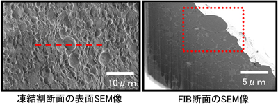 急速凍結後、クライオFIB-SEMにより内部構造の観察をしました。