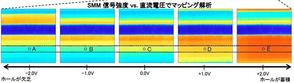 SMM計測は半導体中のキャリア濃度の大小をマッピングできる手法です。また、SMM計測時に試料に直流電圧を印加してキャリアを誘起させながら計測することが可能です。各測定点で印加電圧条件毎にSMM信号を取得しながらマッピング測定を行い、データキューブを構築します。全データ収集後に印加電圧条件ごとにSMM信号を解析することで、印加電圧に対するキャリアの振る舞いを可視化することができます。 本資料では、キャリア濃度既知のSi 試料を用いた解析結果をご紹介いたします。