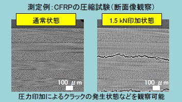 試料を圧縮する方向に圧力を印加した状態でX線CT測定をすることが可能です。