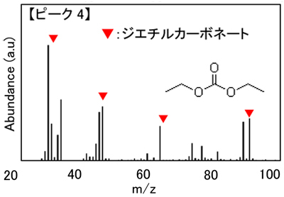 この他の成分としてジエチルカーボネート(DEC)、硫黄化合物が検出されていましたが、後者については添加剤由来の可能性が考えられます。