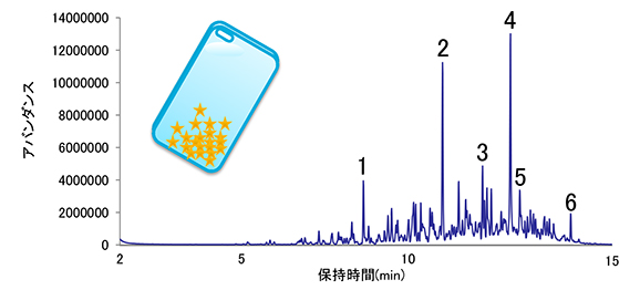 スマートフォンケース内の液体のGC/MS測定結果(TIC)