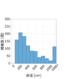 ・長径※500 nm以下のCNFが多数存在 ※CNFを楕円体と仮定