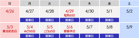 弊団はゴールデンウィーク期間も営業しております。